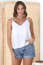 Emah Cami - Relaxed V Neck Adjustable Strap Top in White
