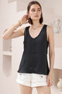 Isla Top - V-Neck Textured Sleeveless Top in Black