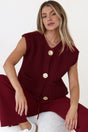 Khloe Knit Top - Sleeveless Large Gold Abstract Button Front Knit in Wine