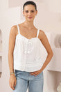 Romia Top - Embroidered and Lace Detailed Button-Down Cami in White