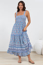 Sophea Midi Dress - Adjustable Strap Tiered Ric Rac Spliced Sun Dress in Iolana Print