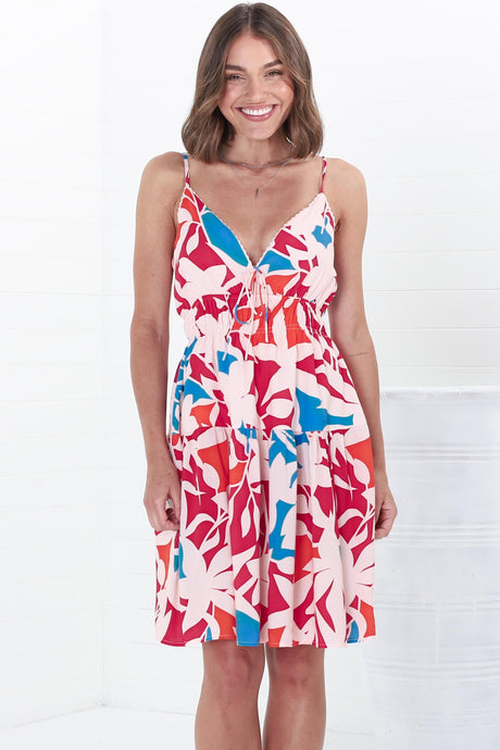 Sennia Mini Dress - Adjustable Spaghetti Strap Sun Dress in Gaubi Print Pink