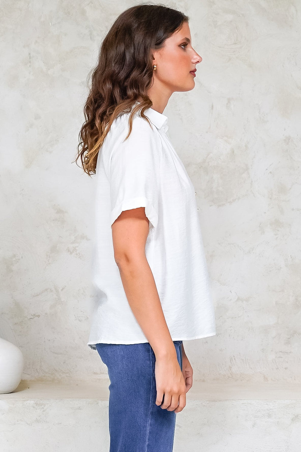 Madge Blouse - Collared Button Down with Short Sleeves in White