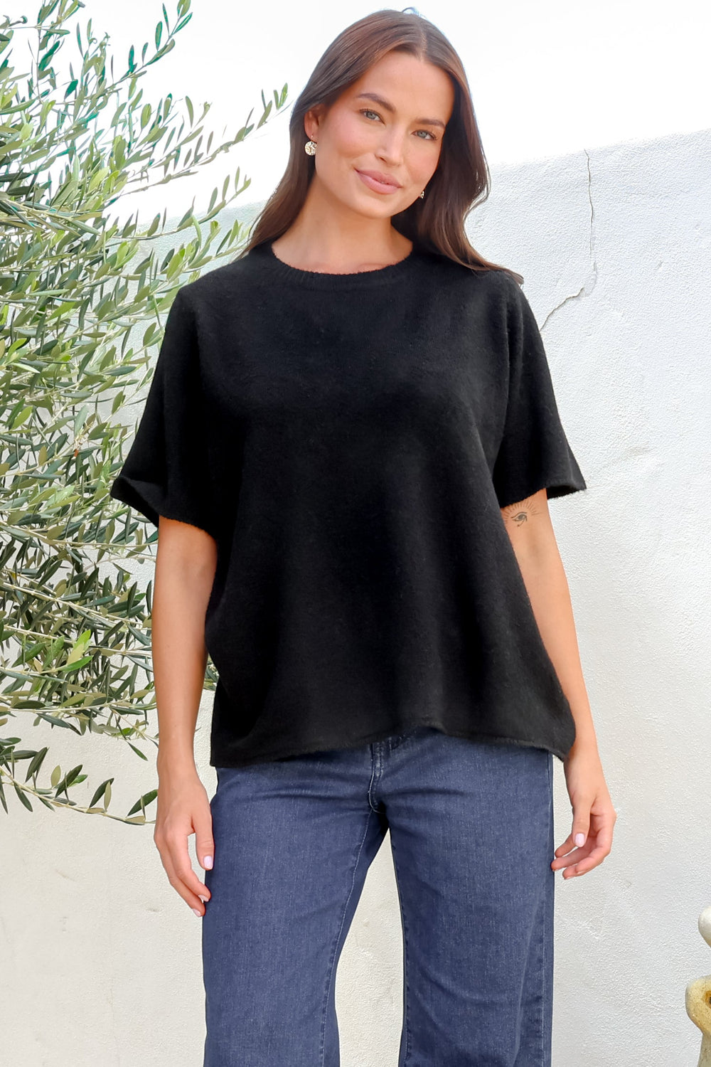 The Fable Knit Top in Black is your new everyday essential, elevated. The super soft viscose-acrylic knit has a beautiful, luxurious feel that's gentle against the skin and comfortable from morning to night, while the classic black hue is the ultimate go-to neutral that works effortlessly with absolutely everything in your wardrobe - from bold prints and bright colours to soft pastels and earthy tones. Wear it tucked into high-waisted jeans for a polished, put-together look, knotted over shorts for a casual weekend vibe, or layered under a jacket for an easy, effortless outfit that works anywhere.