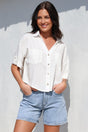 Marion Shirt - Collared Buttoned Down Shirt with Pockets in White