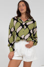 Make a bold statement with this Zev Shirt, a perfect blend of modern art-inspired design and everyday elegance. Featuring a striking geometric pattern in olive green, black, and beige, this shirt adds a contemporary twist to your classic button-up collection.