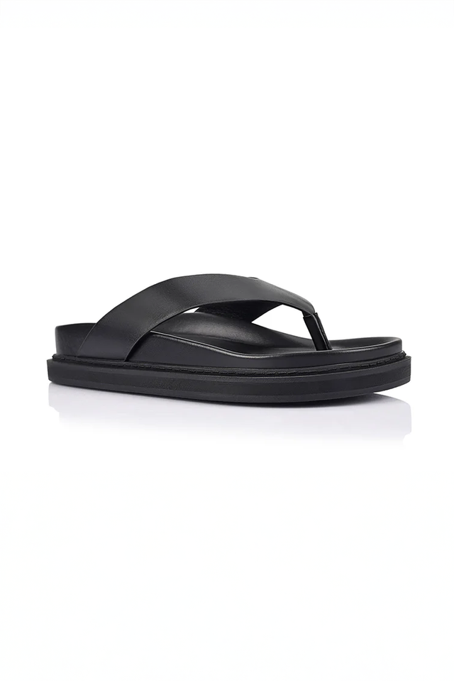 Discover Bridget by Verali. Elevate your off-duty style with this modern take on the classic thong. Featuring wide crossover straps and a chunky platform sole, this sandal blends sleek minimalism with a laid-back edge. Perfect for pairing with relaxed tailoring or casual denim, it’s your go-to for effortless, all-day cool.