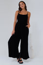 Lonnie Jumpsuit - Square Neckline Wide Leg Pant Jumpsuit in Black