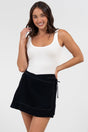 Effortlessly stylish, the Xara Mini Skirt is a true wrap silhouette, designed to flatter with its playful length and subtle ladder lace details, making it your go-to for chic warm-weather ensembles.