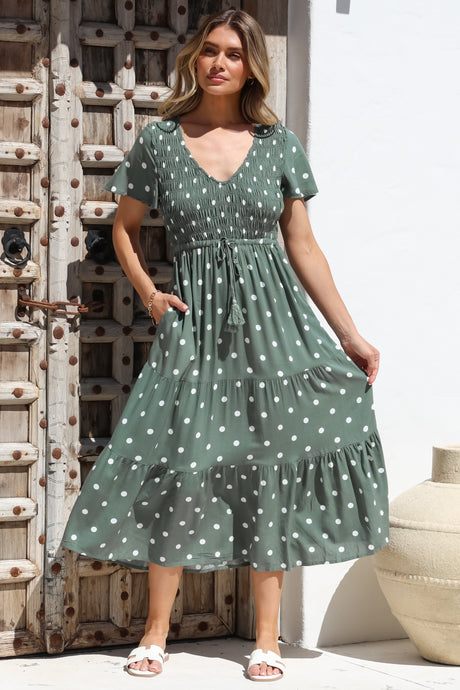 • Amaya Midi Dress - Shirred Cap Sleeve A Line Dress in Lola Print