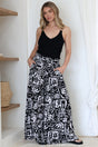 Ashora Pants - Paper Bag High Waisted Wide Leg Pants with Black & White Graphic Print