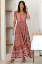 JAASE - Carmen Maxi Dress: Butterfly Cap Sleeve Button Down A Line Dress with Lace Trim in Coral Eden Print