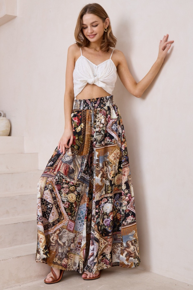 Charli Pants - Paper Bag High Waisted Wide Leg Pants in Elaine Print
