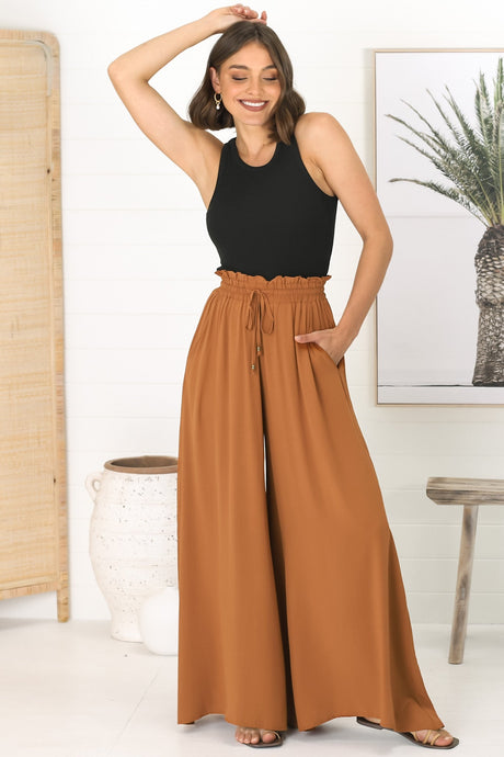 Charli Pants - Paper Bag High Waisted Wide Leg Pants in Amirah Print
