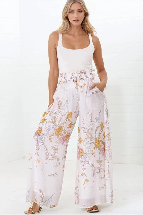 Charli Pants - Paper Bag High Waisted Wide Leg Pants in Ellnora Print