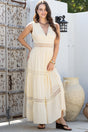 Cassia Maxi Dress - Lace Trim V-Neck Sleeveless with Lace Splicing Dress in Cream
