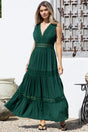 Cassia Maxi Dress - Lace Trim V-Neck Sleeveless with Lace Splicing Dress in Emerald