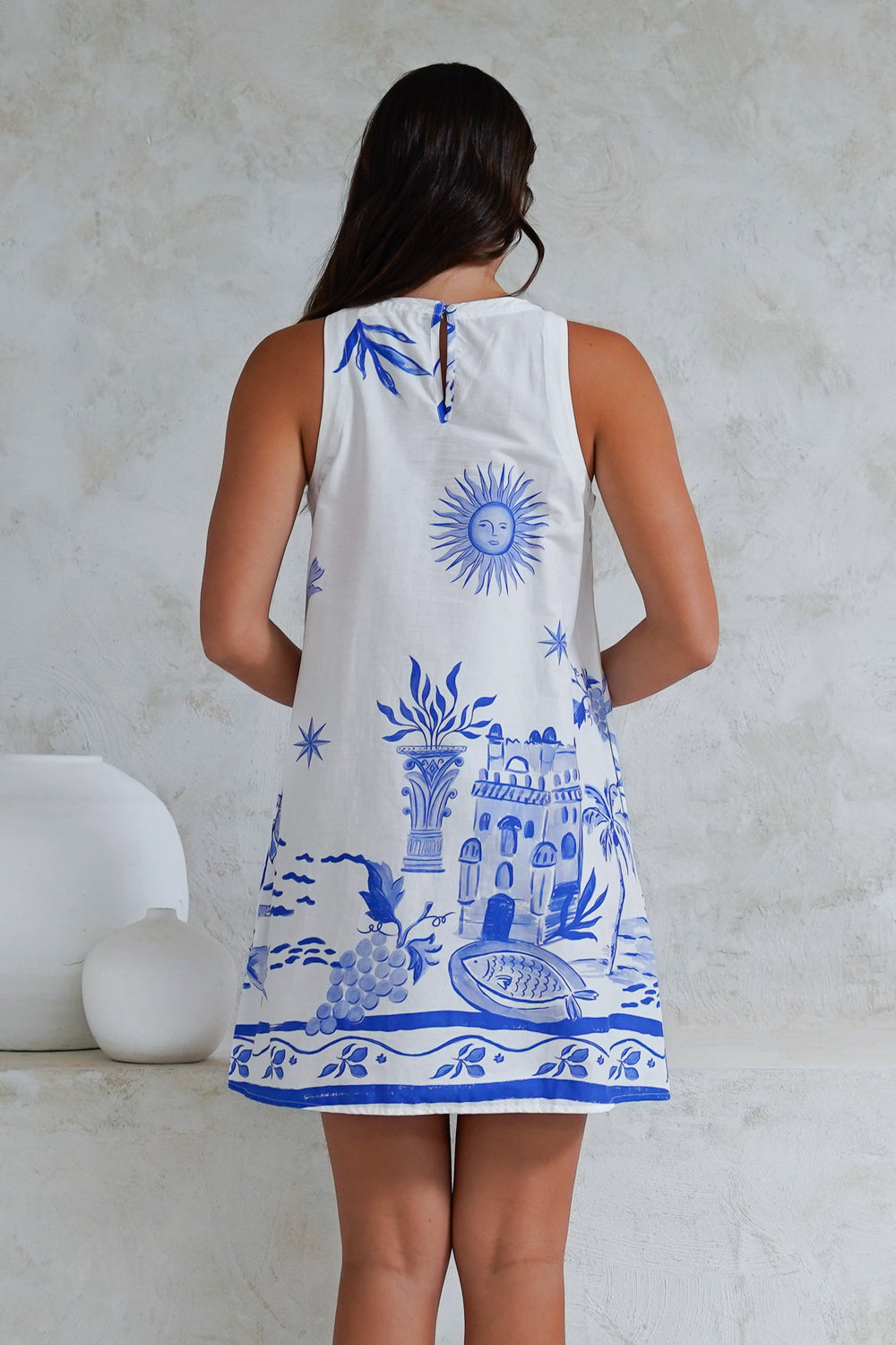 Pebbles Mini Dress - Halter Neck Shift Dress with Pockets in Daytona Print