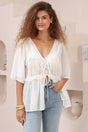 Aspen Top - Cotton Front Tie Up Top with Frill Splicing in White