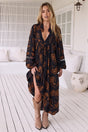 JAASE - Boheme Midi Dress: Long Sleeve Piping Defined Bust Slimline Smock Dress in Seraphina Print