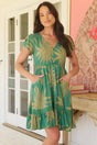 JAASE - Carmen Mini Dress: Butterfly Cap Sleeve Button Down A Line Dress with Lace Trim in Island Luxe Print