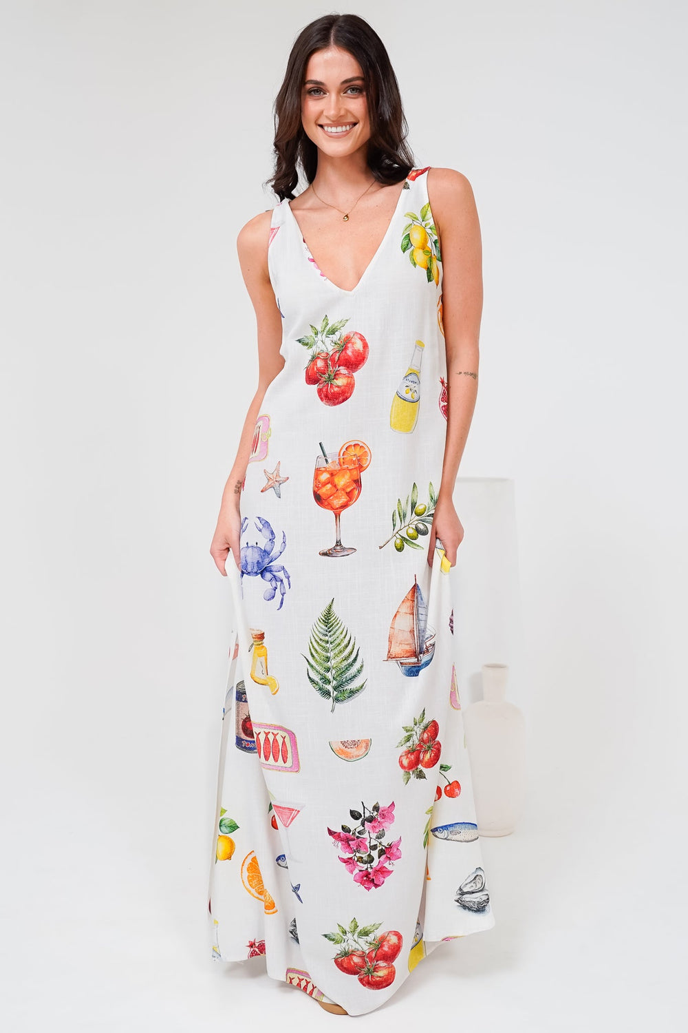 Janeen Maxi Dress - A-Line Sleeveless Dress with Side Splits in Paradisa Print