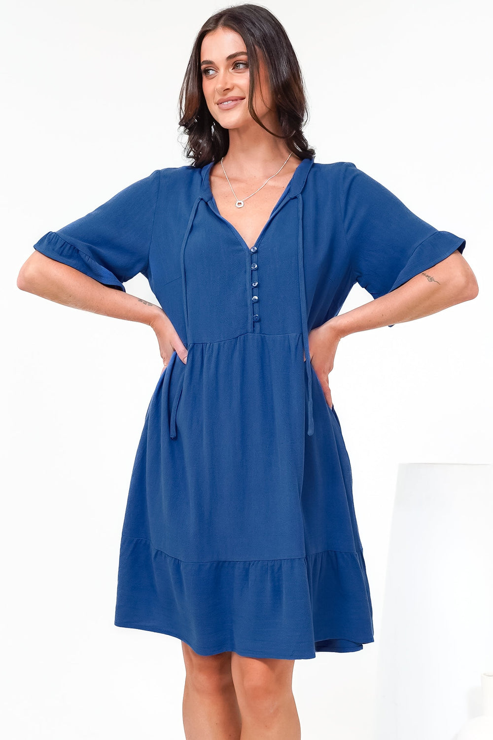 Effortlessly elegant and endlessly versatile, the Madalena Mini Dress is a timeless piece that flows with graceful ease. Its relaxed silhouette and tiered skirt create a look of understated bohemian charm, perfect for any occasion.