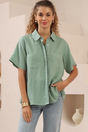 Amanda Shirt - Collared Button Down Shirt with Contrast Stitching in Sage