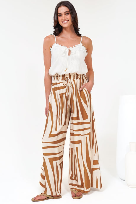 Channing Pants - High Waisted Wide-Leg Pants with Pockets in Dasher Print Brown