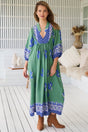 JAASE - Boheme Midi Dress: Piping Defined Bust Slimline Smock Dress In Gemstone Print