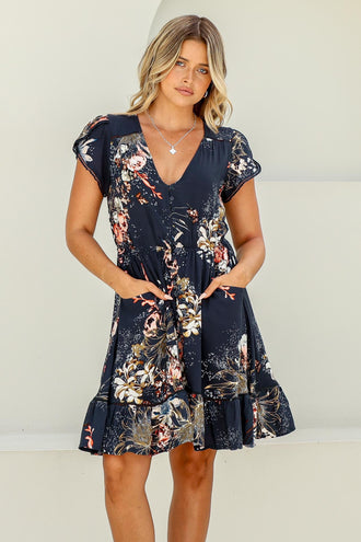 JAASE - Tracey Mini Dress: Cap Sleeve Dress with Waist Tie in Bohemia Print