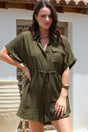 Brienne Playsuit - Collared Pull Tie Waist Playsuit with Pockets in Khaki