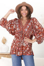 Joelle Top - V Neck High-Low Top in Anissa Print Rust