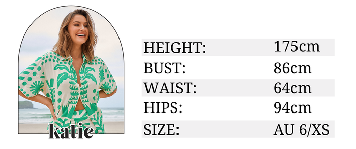 *All sizing is listed in Australian sizes and measurements are listed in centimetres and measured by hand at Salty Crush HQ.