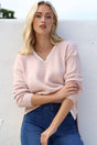 Edan Jumper - V-Neck Contrast Trim Step Hem Jumper in Blush