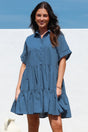 Estelle Mini Dress - Collared Tiered Smock Dress in Dark Blue
