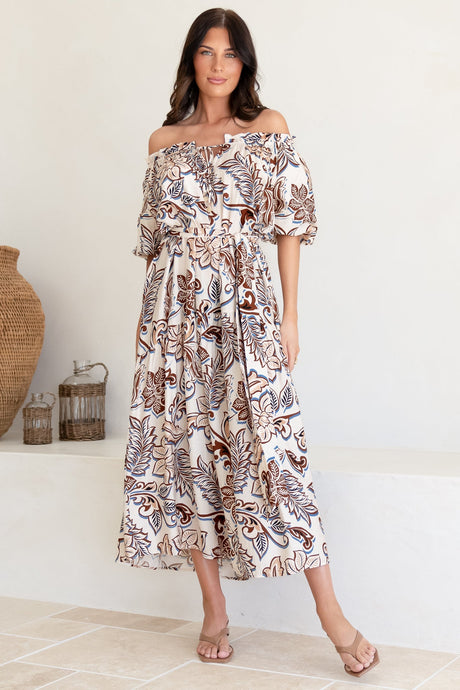 Criselda Maxi Dress - On or Off Shoulder Ballon Sleeve Dress in Palermo Print