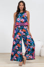 Luchia Jumpsuit - Sleeveless Overlay Bodice Jumpsuit with Ric Rac Trims in Florabelle Print