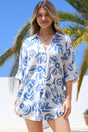 Beachly Shirt - Folded Collar Button Down Relaxed Shirt In Shillie Print Blue