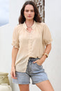 Luella Shirt - Subtle Textured Stripe Button Down with Puff Sleeves in Beige
