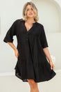 Ayva Mini Dress - 3/4 Sleeve Tiered Smock Dress in Black