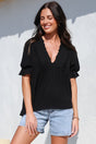 Embrace an effortlessly chic look with the Catha Top, featuring a delicate ruffled V-neckline and lightly puffed sleeves that create a breezy, romantic silhouette perfect for any casual-to-dressy occasion.