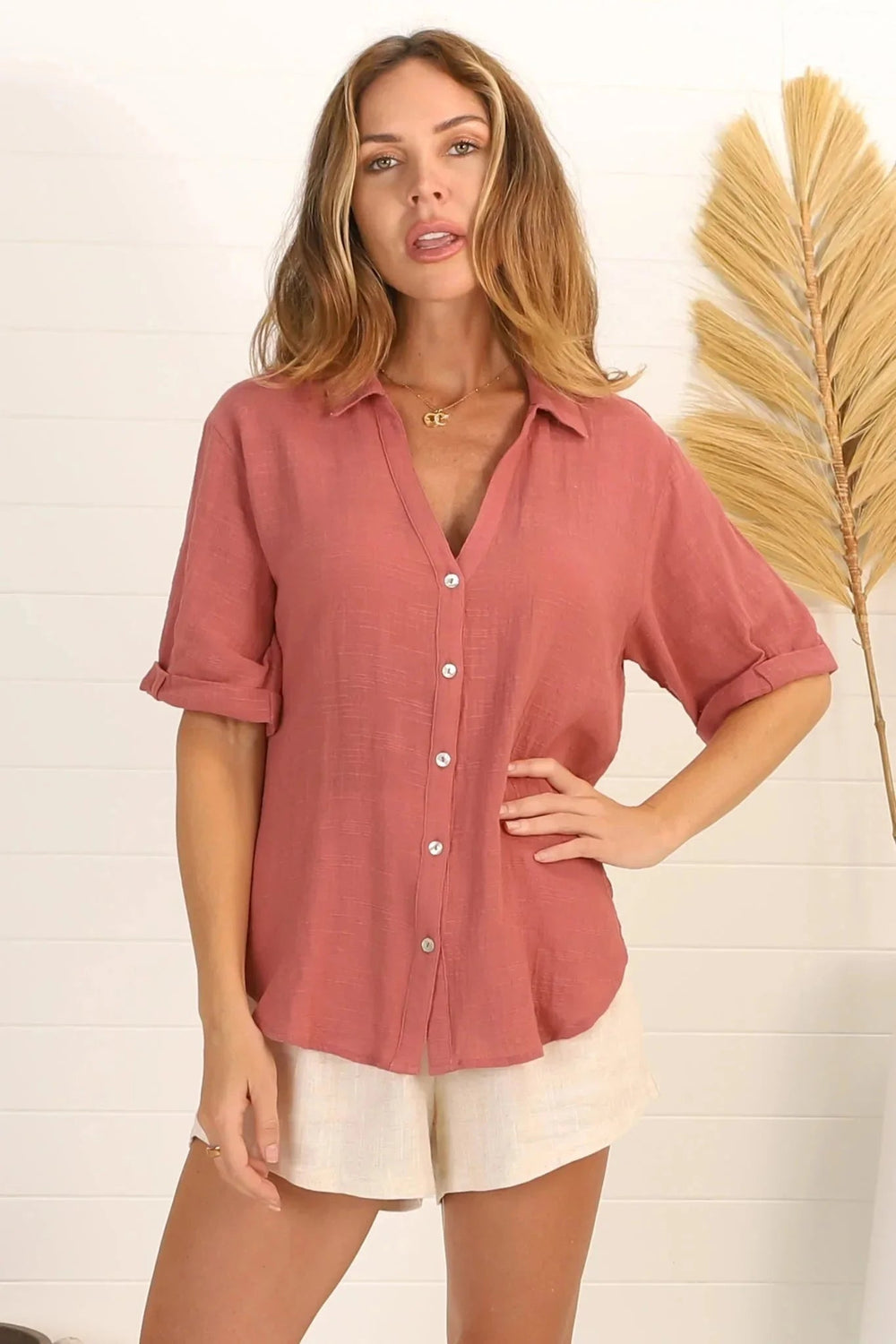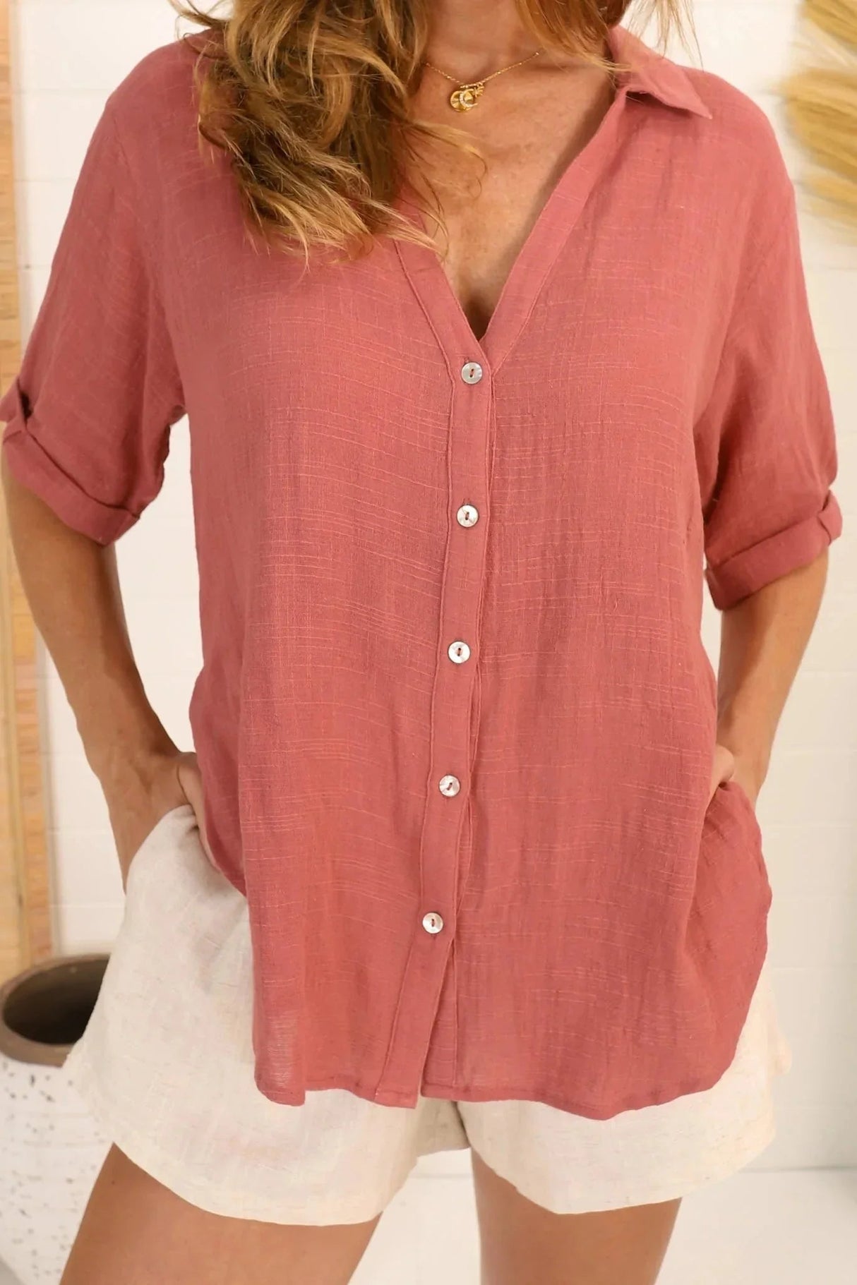 Your new favourite wardrobe staple has arrived. Introducing our new Shelly Shirt in Guava - the perfect top to pair with your go-to denim pants on a night out, or vibe it casual during a day at the beach.