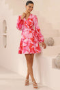 Sybil Mini Dress - Wrap A Line Dress with Long Balloon Sleeves in Greta Print