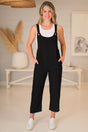 Tulum Jumpsuit - Linen Blend Overalls Pockets in Black