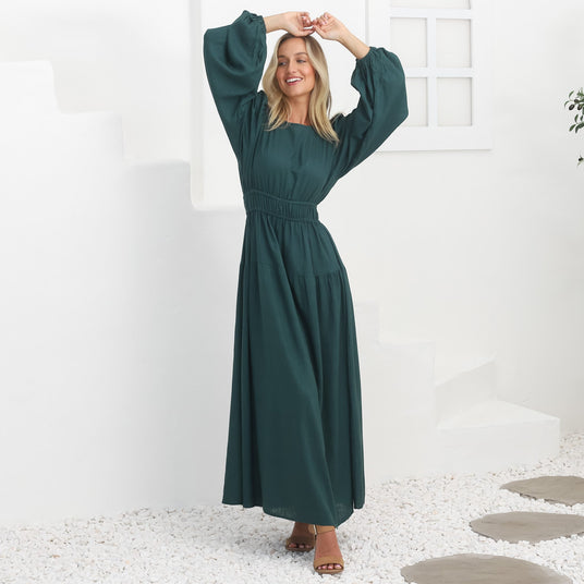 Back by popular demand, the Sheyne Maxi Dress is an autumn favourite making its return just in time for the season’s change. With its flowing A-line silhouette, scoop neckline, and detailed elasticated waist, this restocked beauty is perfect for making a statement. The long balloon sleeves with elasticated cuffs add an extra touch of elegance, making it a must-have for your seasonal wardrobe.
