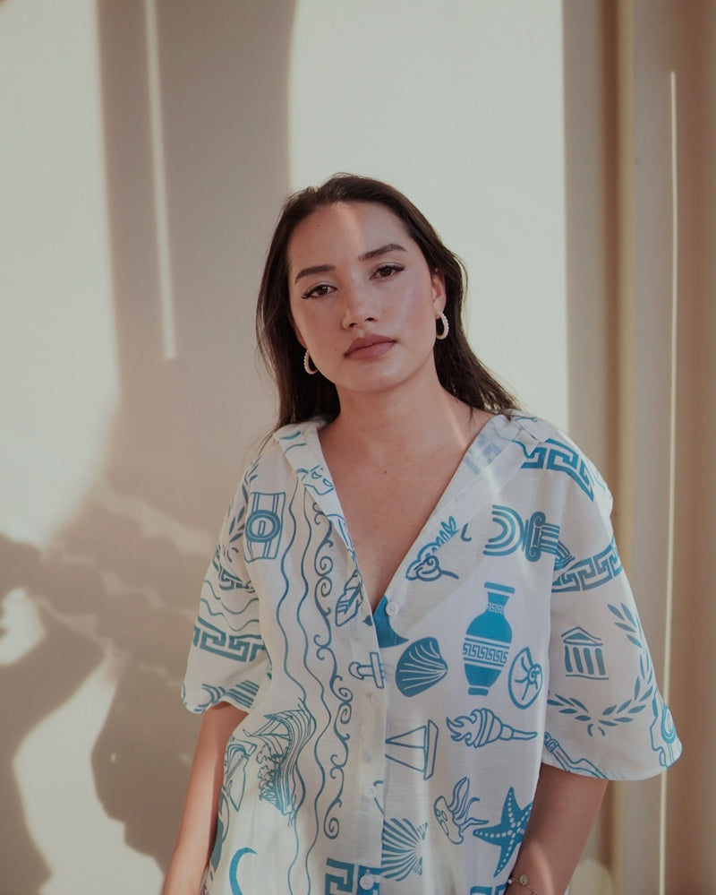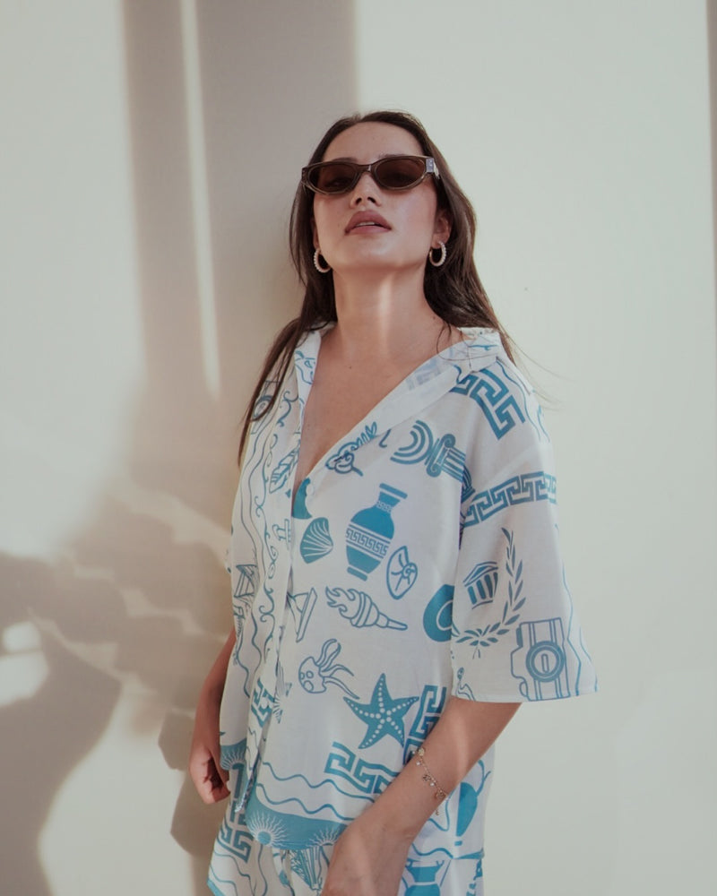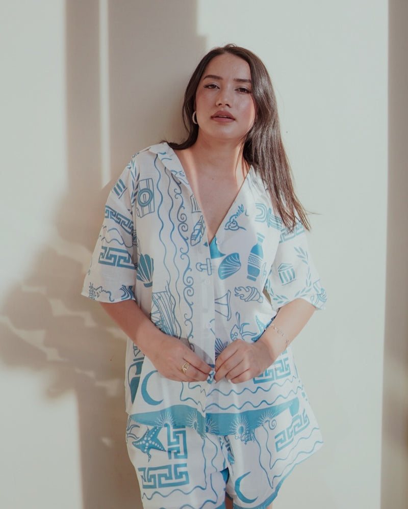 If you looked up "Cool Girl Summer Aesthetic" in the dictionary you'd see this #saltycrushbabe glowing in our Mirian Set - Piper Print Blue