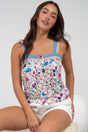 Aspa Top - Thick Adjustable Strap Button Front Crop in Gardner Print