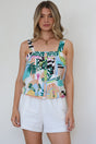 Aspa Top - Thick Adjustable Strap Button Front Crop in Melora Print