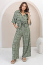 Rayane Collared Shirt and Pants Set - Astra Print in Green